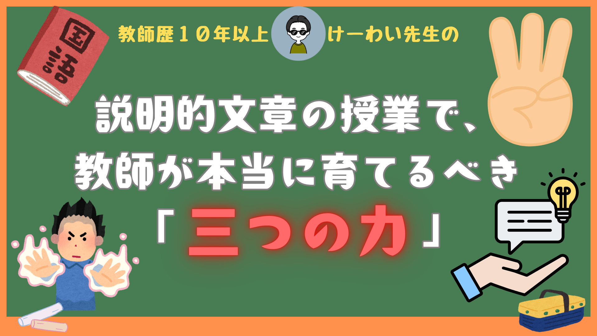 説明的文章の授業で教師が意識的に育てるべき力は、大きく分けて三つあります。